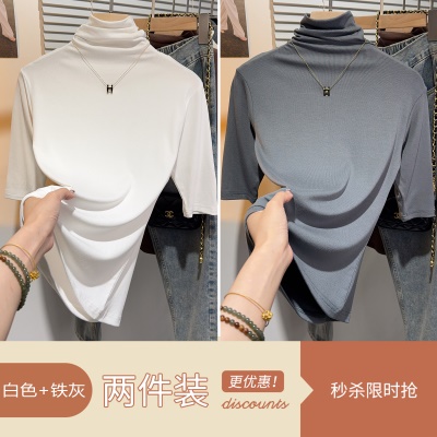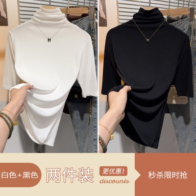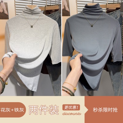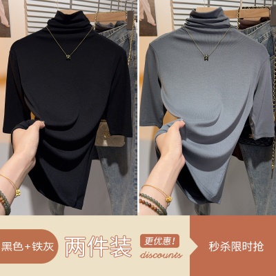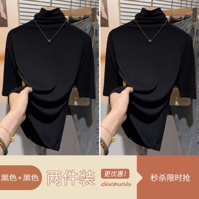 五分袖黑色高领春秋高领打底衫女内搭可外穿修身显瘦t恤气质上衣