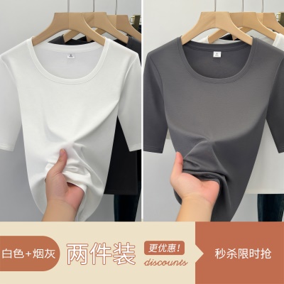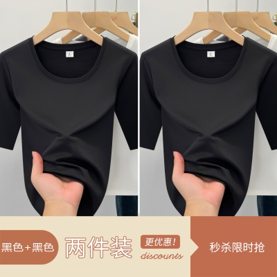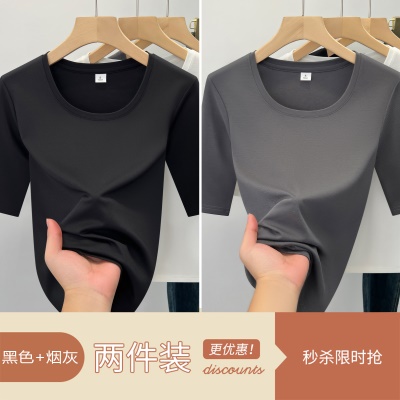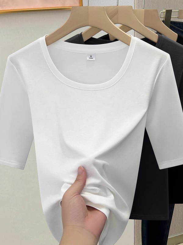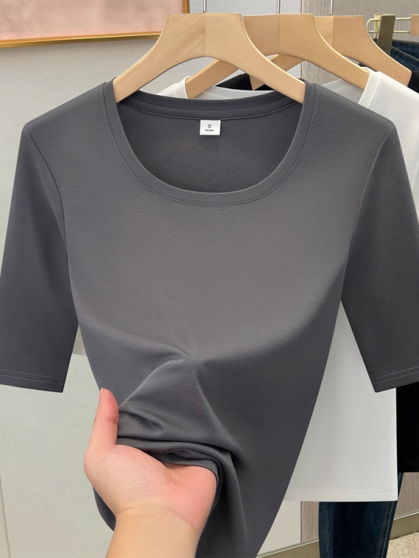 天丝正肩T恤女早春新款修身内搭打底衫夏季减龄百搭低领中袖上衣