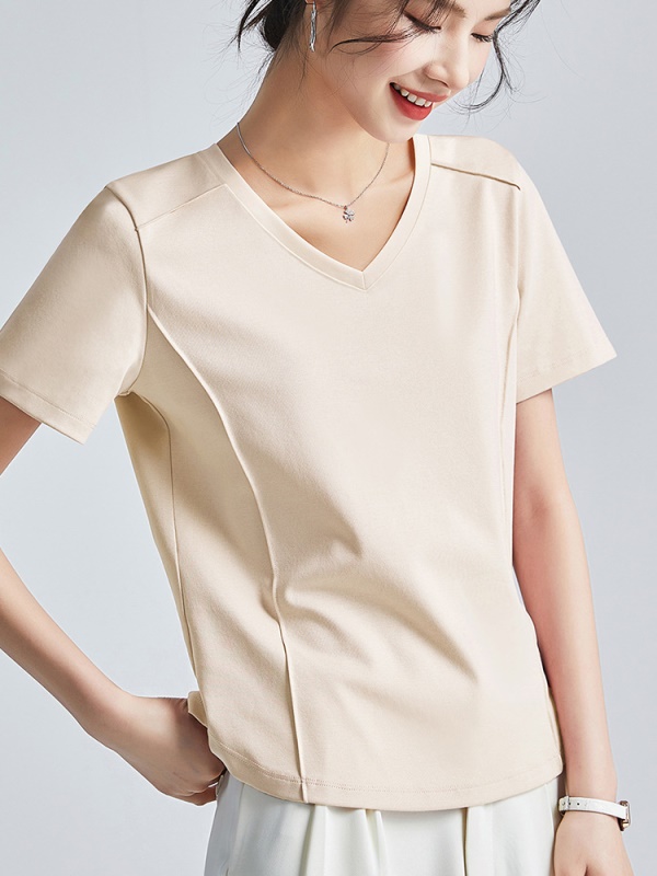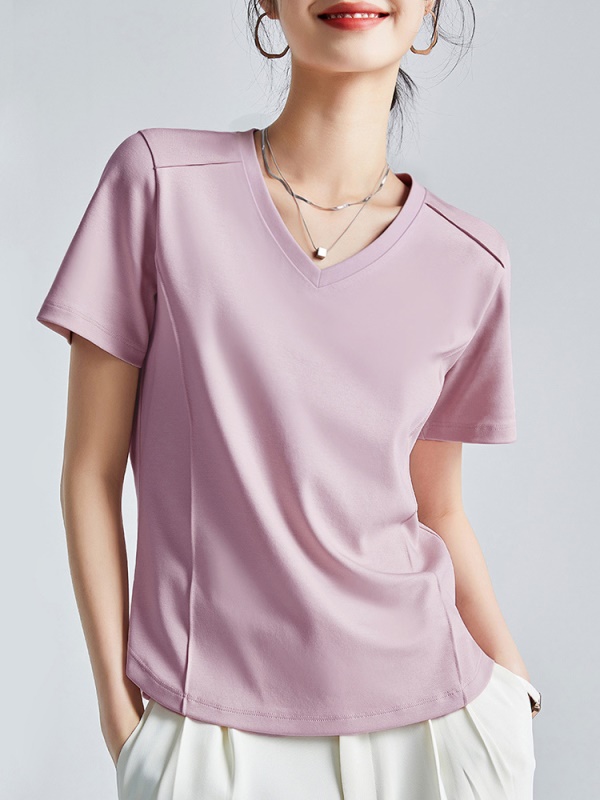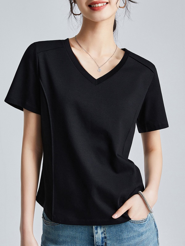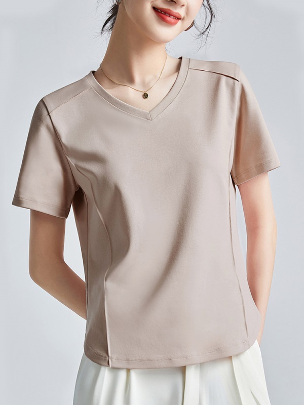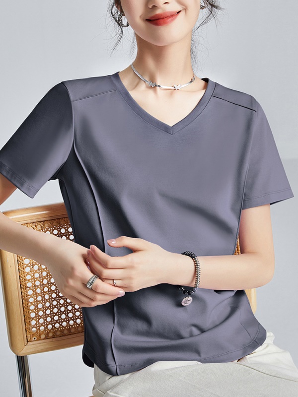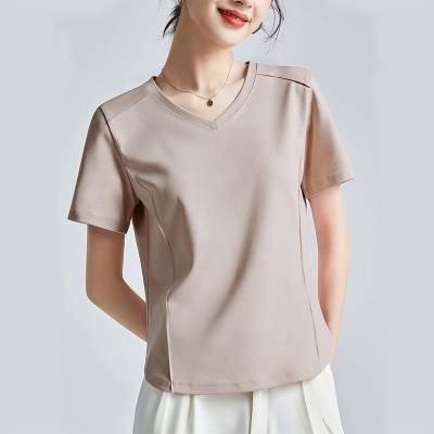 商品名称:液氨凉感短袖正肩t恤女2025夏季丝光棉V领体恤半袖时尚打底衫上衣