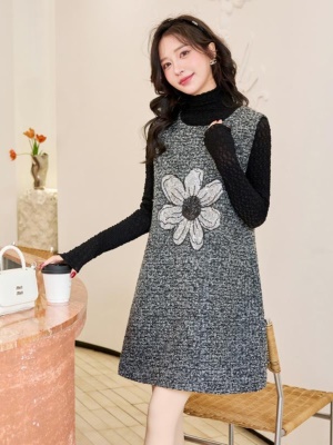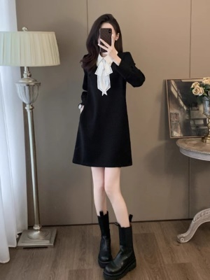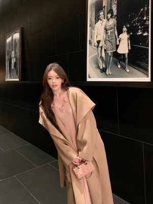 ByYou 冬季粉色V领内搭挂脖针织连衣裙中长款过膝毛衣裙收腰裙子