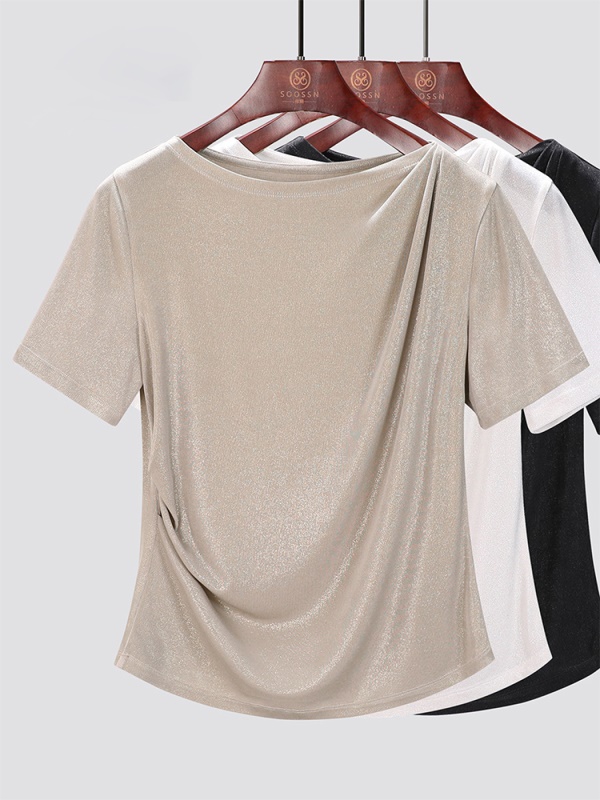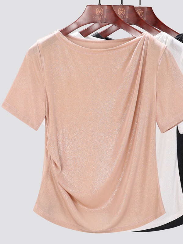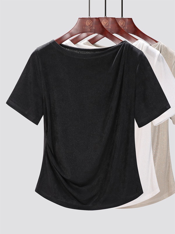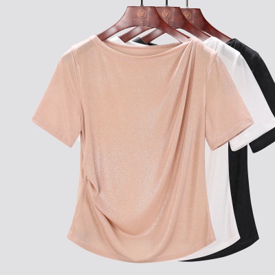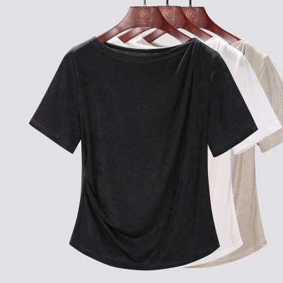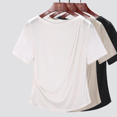 商品名称:醋酸高级感T恤女短袖2025夏新款上衣潮休闲百搭洋气正肩圆领体恤
