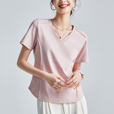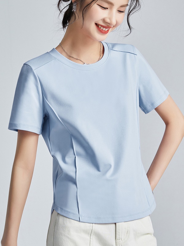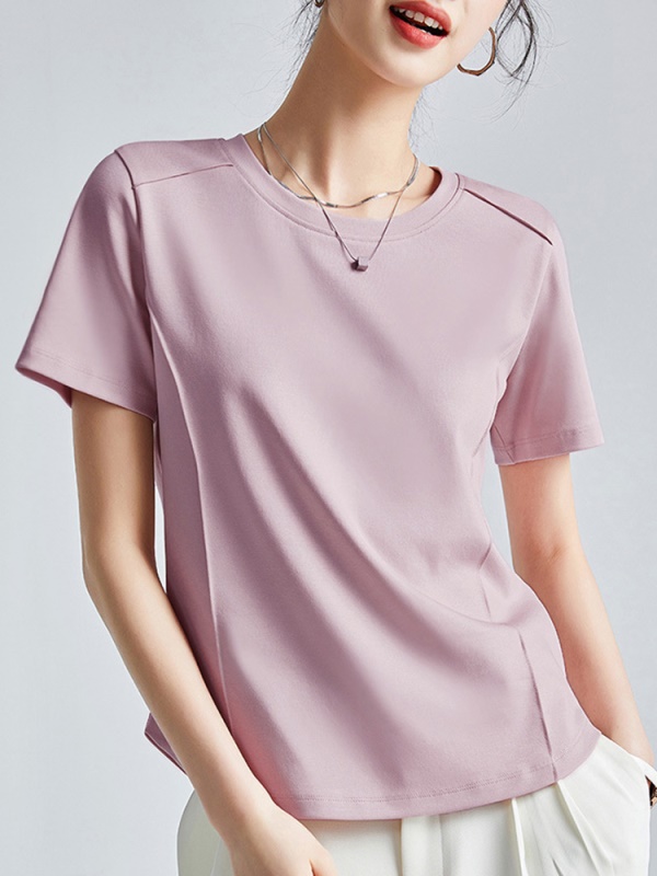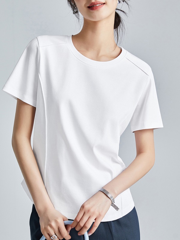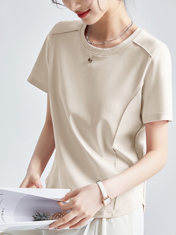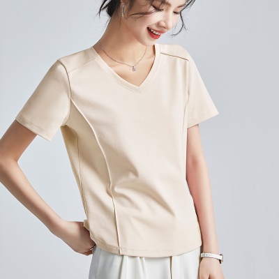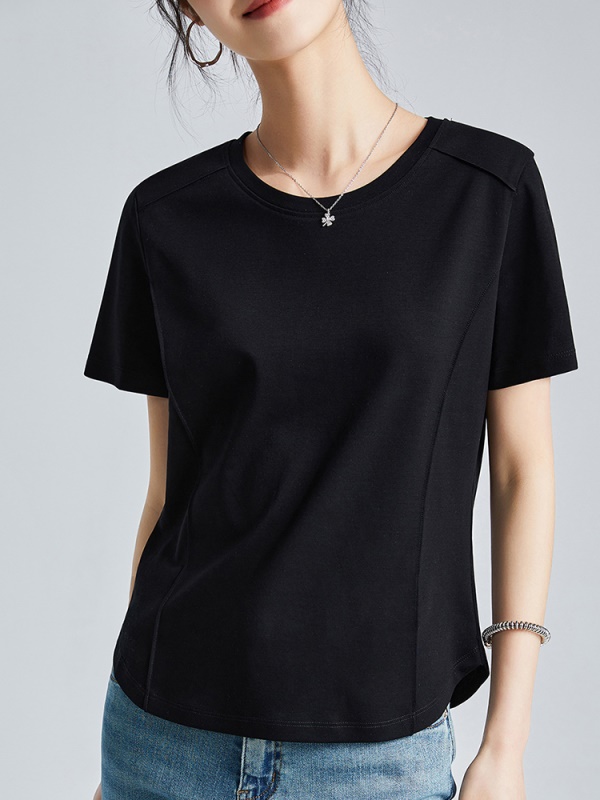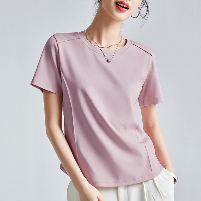 商品名称:丝光棉液氨短袖t恤女2025年夏季纯色正肩圆领打底衫 洋气体恤半袖