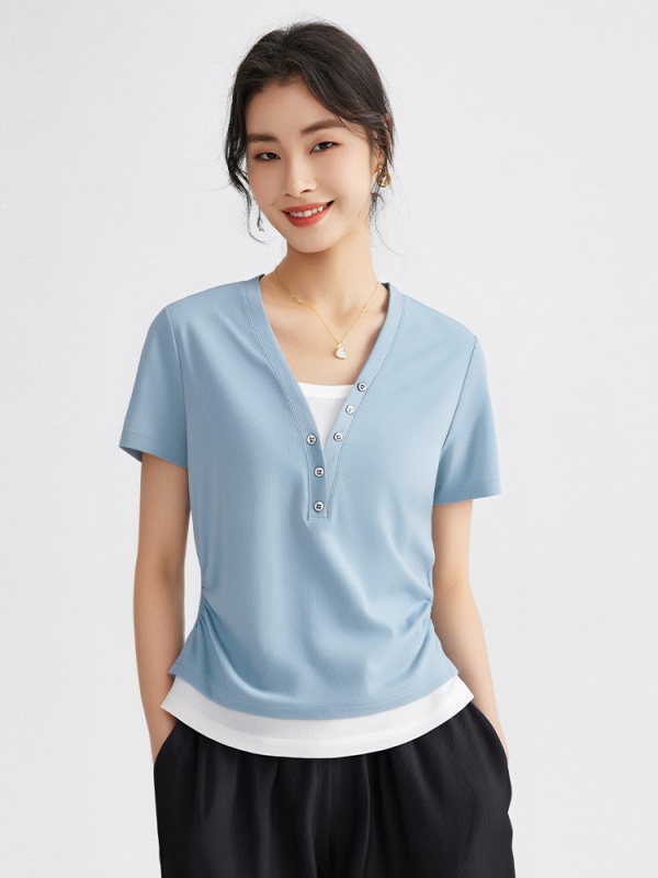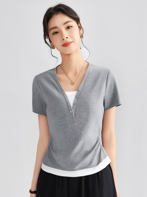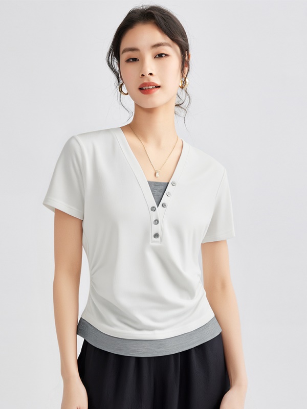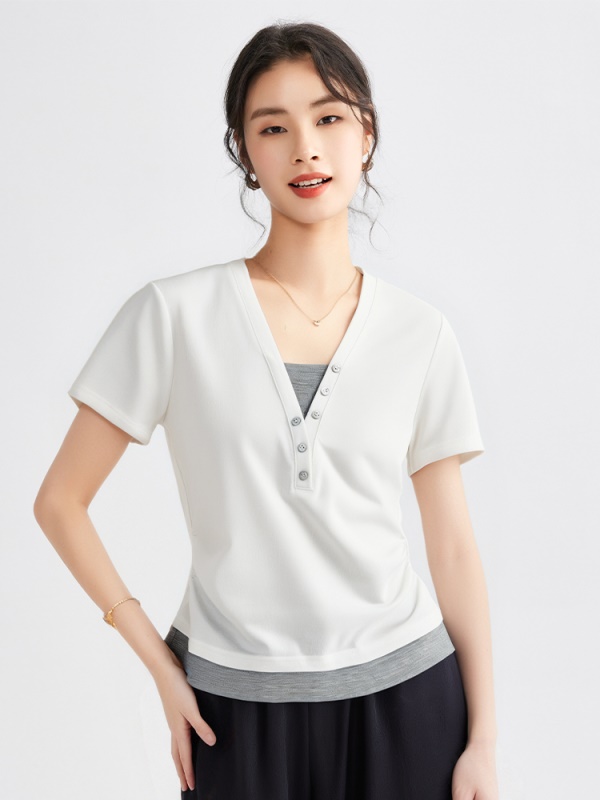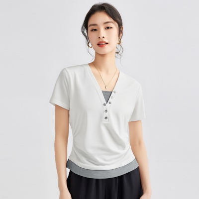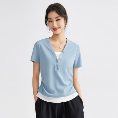商品名称:假两件休闲女装短袖女t恤2025新款高级感时尚显瘦洋气减龄上衣潮