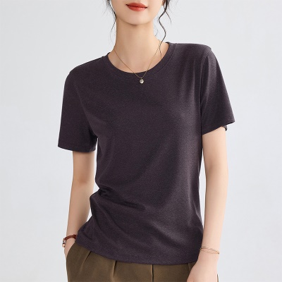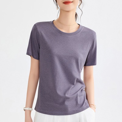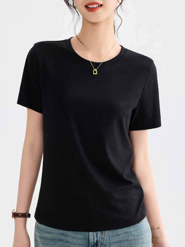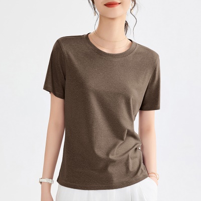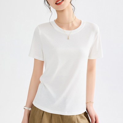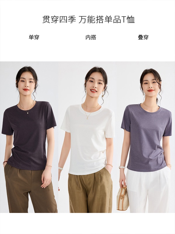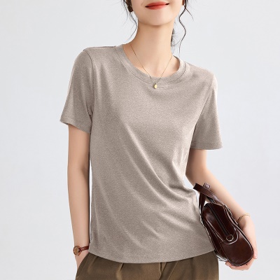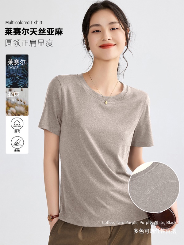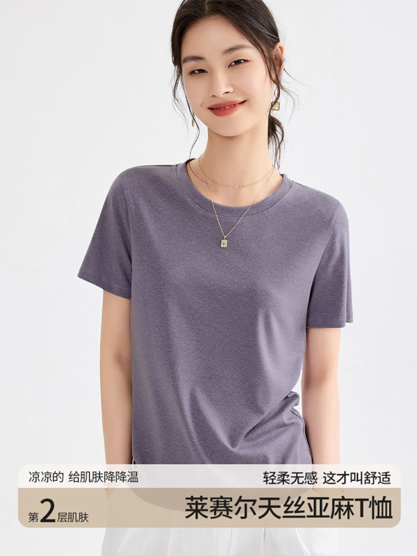 商品名称:天丝T恤女2025新款亚麻凉感薄款体恤莱赛尔圆领短袖夏高级感上衣