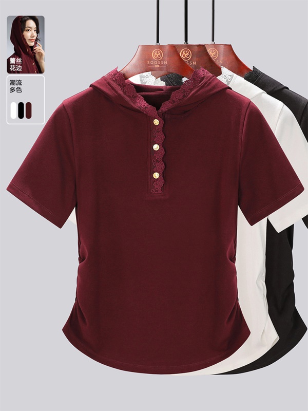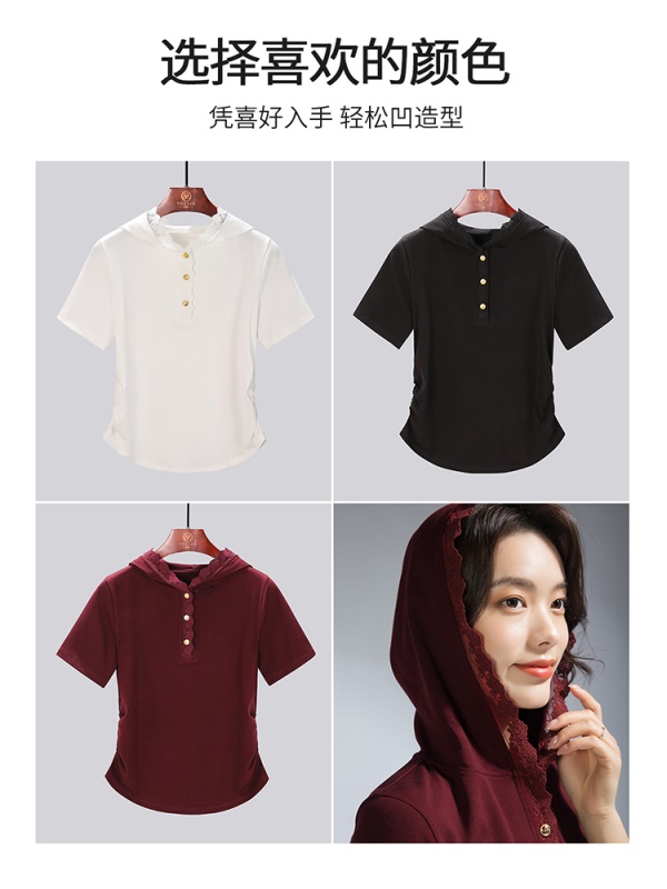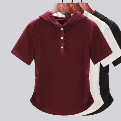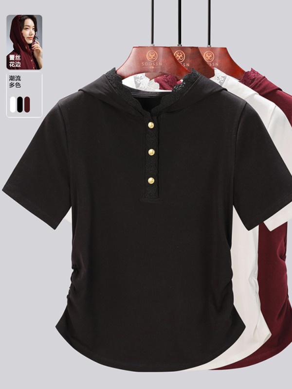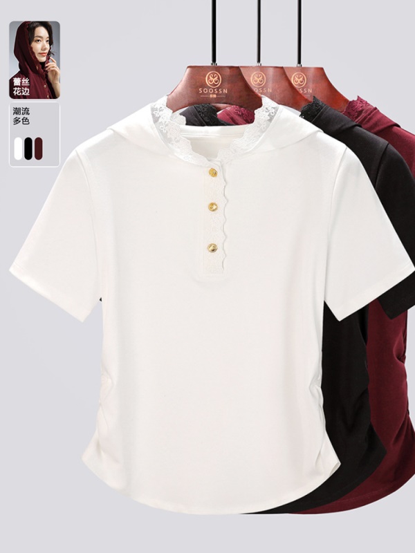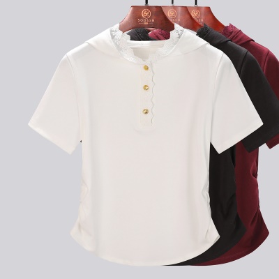 ATAR蕾丝花边拼接套头短袖T恤 女夏季2025新款小个子修身百搭上衣