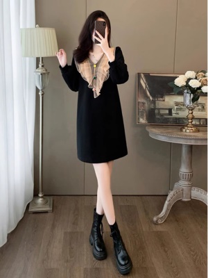 黑色高级感超好看v领连衣裙女秋冬显瘦法式气质洋气小个子小黑裙