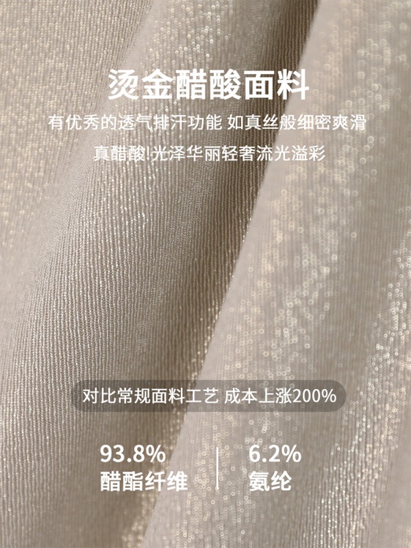 材质成分:醋酯纤维(醋纤)93.8% 聚氨酯弹性纤维(氨纶)6.2%