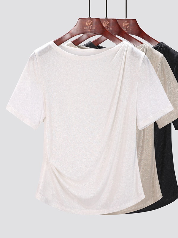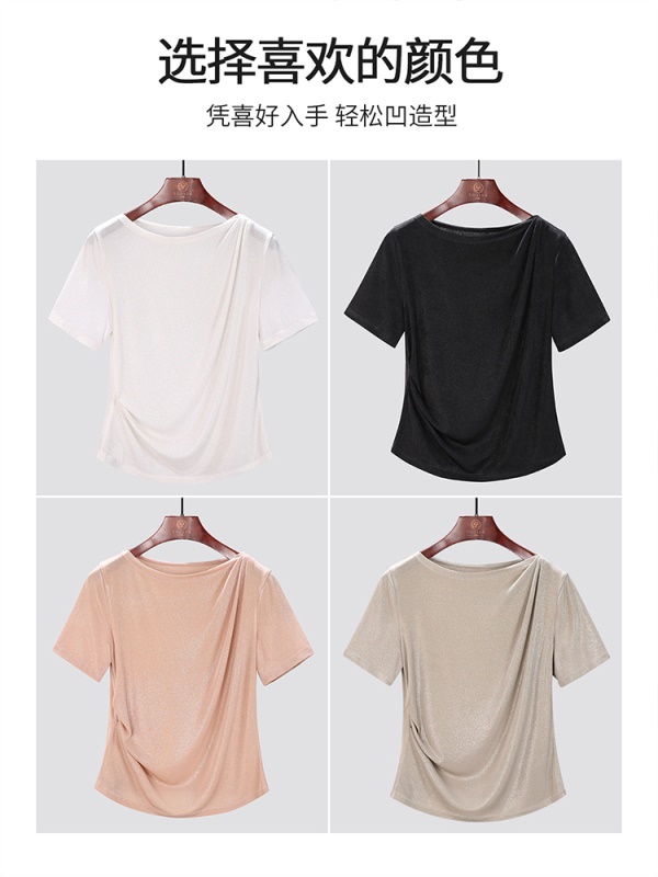 商品名称:2025夏季新款休闲百搭白色短袖正肩圆领上衣垂感洋气醋酸T恤女潮