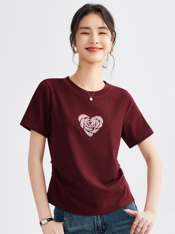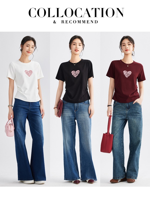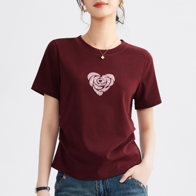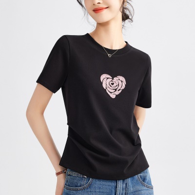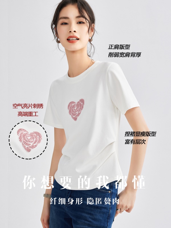 商品名称:趣味爱心刺绣白t宽松百搭T恤女2025夏季舒适休闲简约圆领短袖上衣