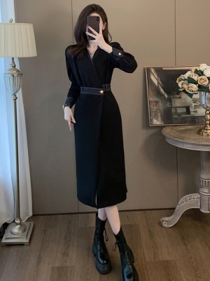小香风气质黑色连衣裙高级感女秋冬加绒长袖收腰显瘦赫本风小黑裙