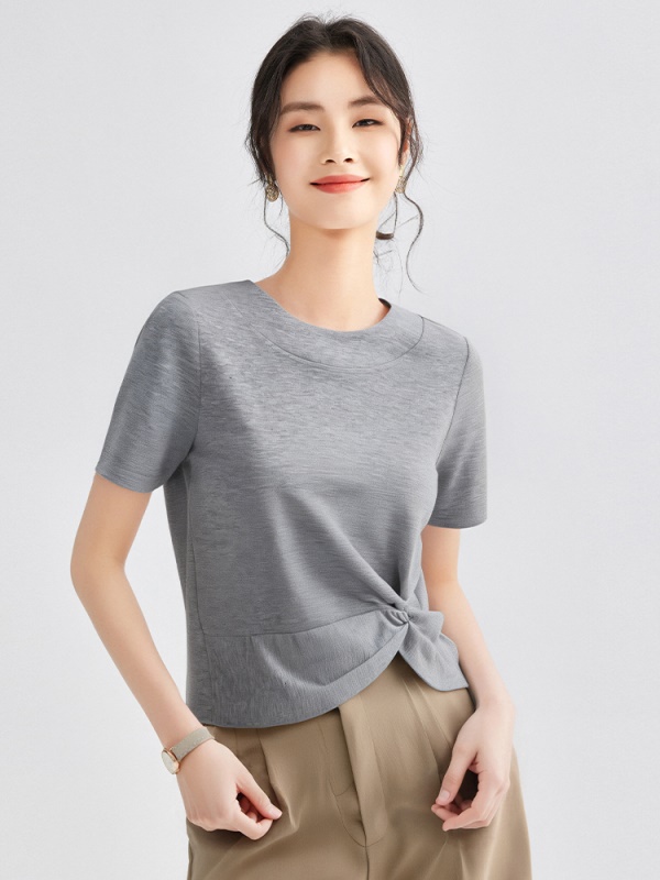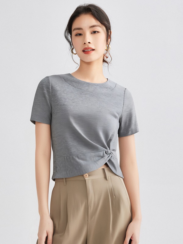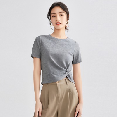 莱赛尔天丝短袖T恤女士夏季凉感抗皱洋气基础体恤衫纯色圆领上衣