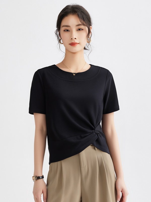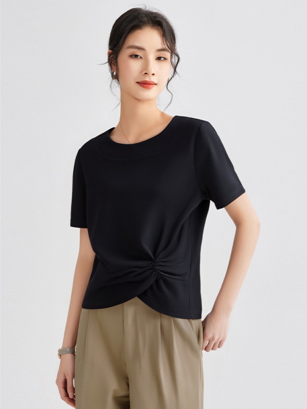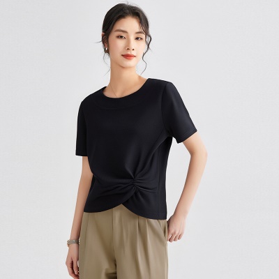 商品名称:黑色短袖t恤女2025新款夏季上衣洋气褶皱圆领减龄百搭高级感时尚T