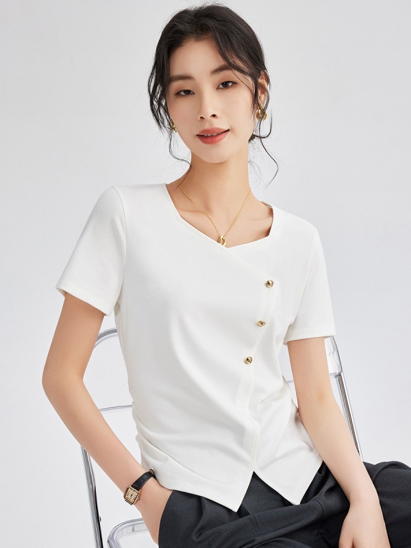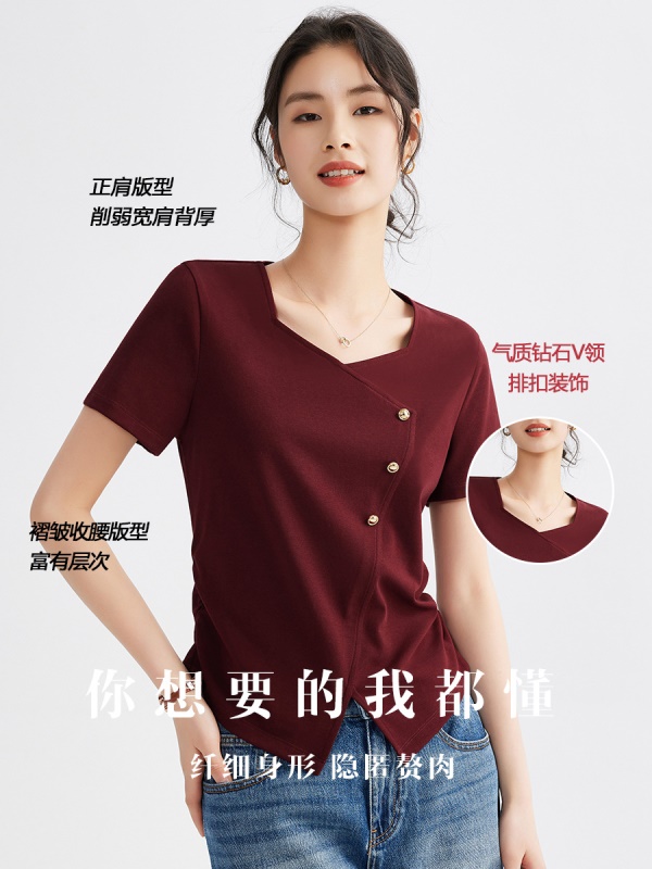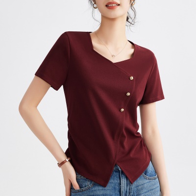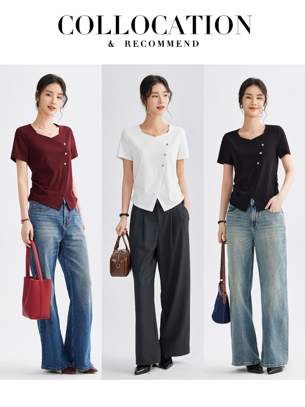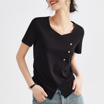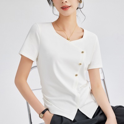 商品名称:正肩方领短袖t恤女夏季2025新款高端不规则半袖上衣修身显瘦体恤