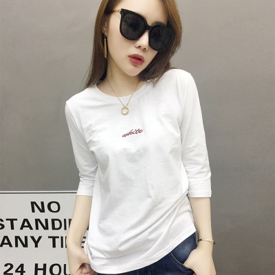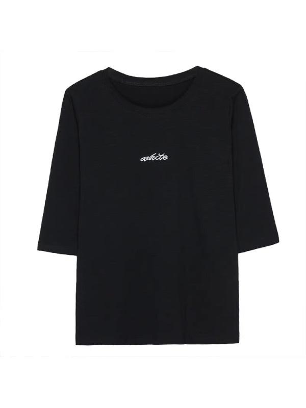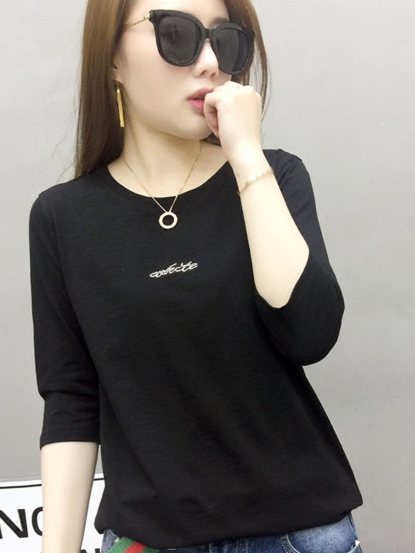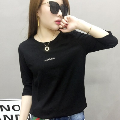 中袖t恤女士V领上衣修身黑色五分袖打底衫女内搭2025新款大码女装