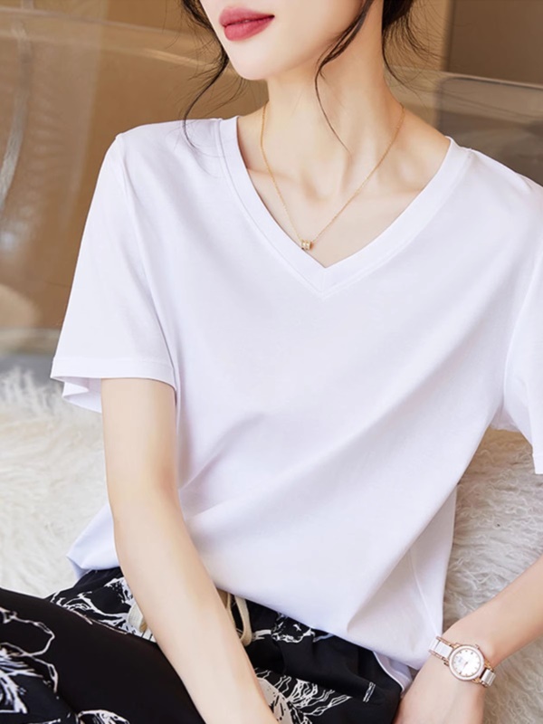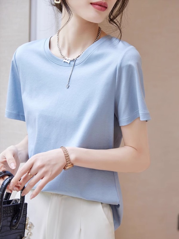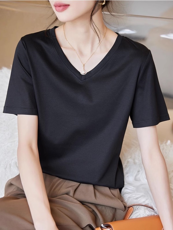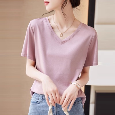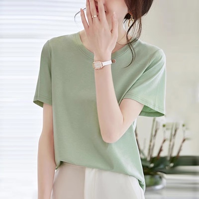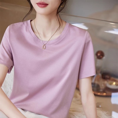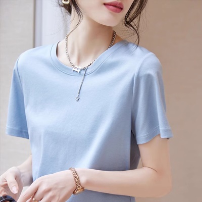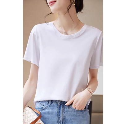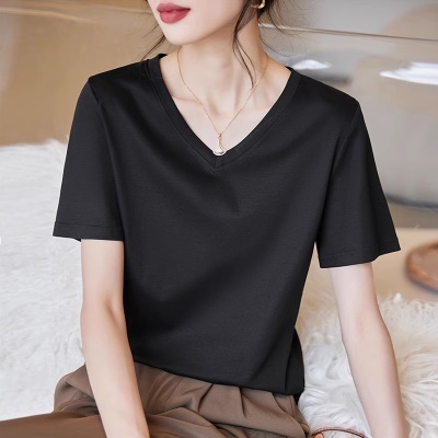 商品名称:桑蚕丝短袖t恤女2025新款丝光棉轻奢宽松半袖体恤高级感上衣夏季