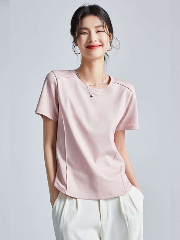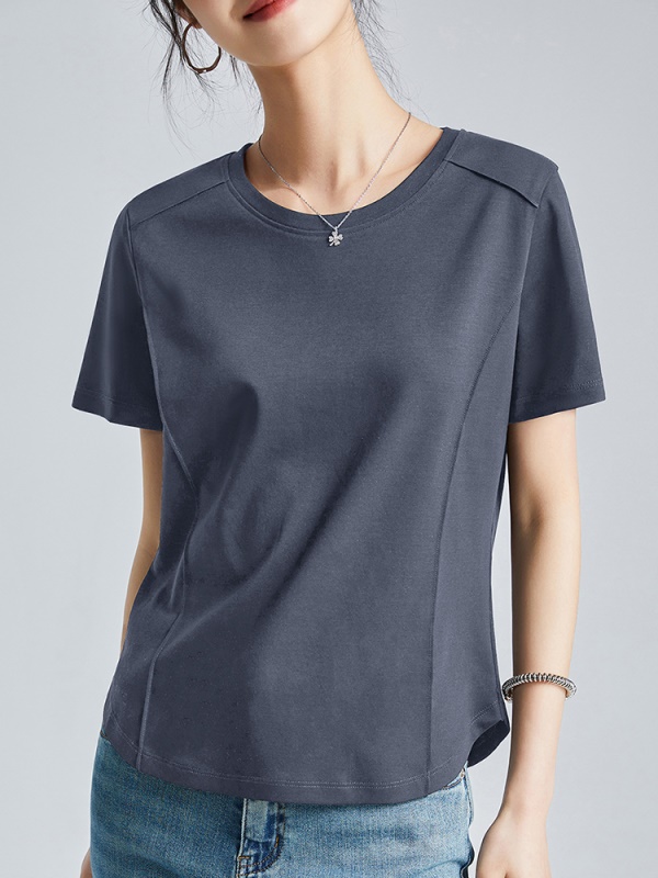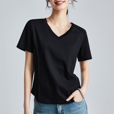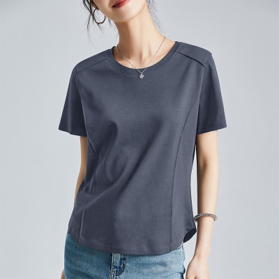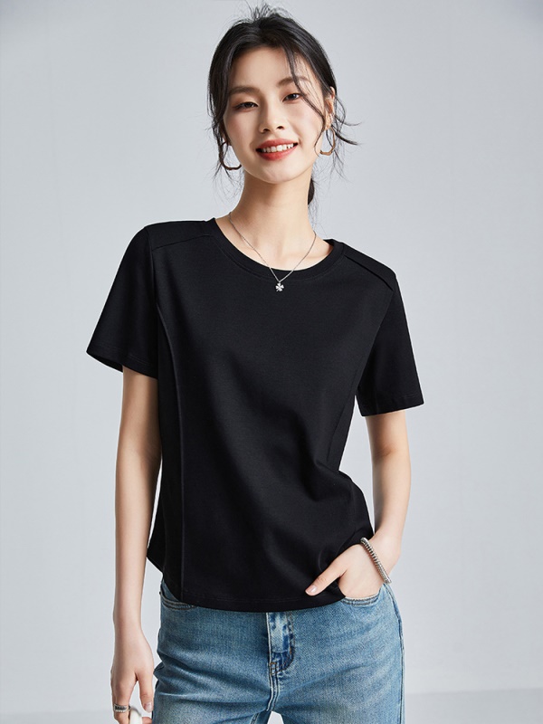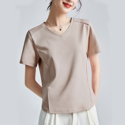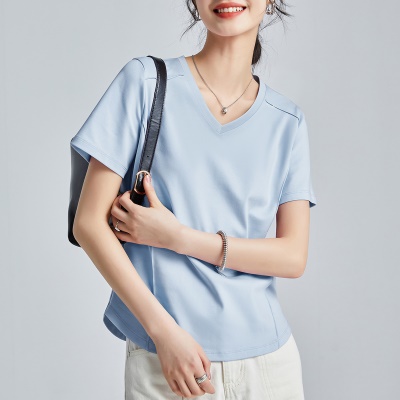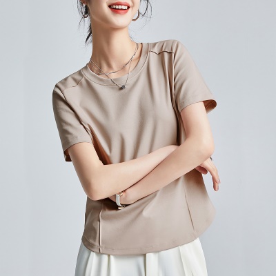 商品名称:液氨白色短袖正肩t恤女2025年春夏丝光棉圆领打底衫时尚休闲上衣