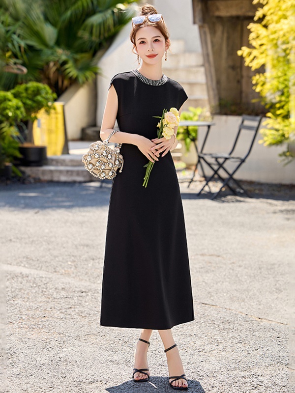 商品名称:黑色赫本风连衣裙女2025夏季新款高级感气质名媛收腰无袖礼服裙子
