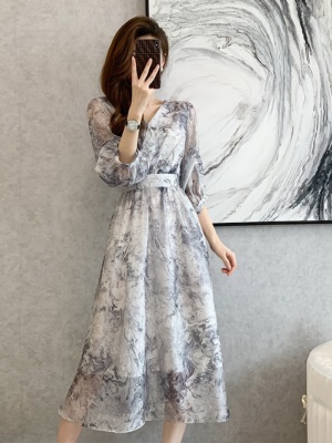 高级感法式雪纺碎花连衣裙女夏2025新款气质高端轻奢收腰显瘦裙子