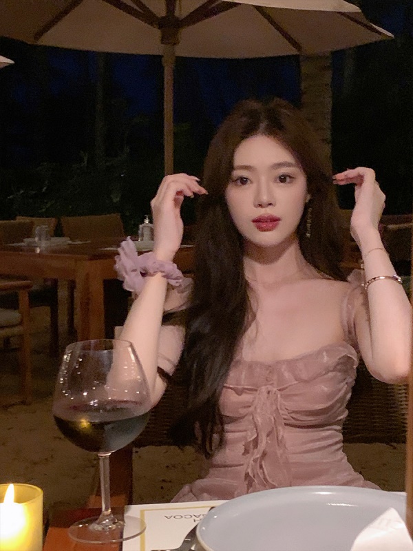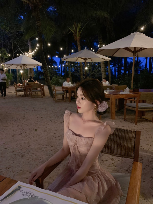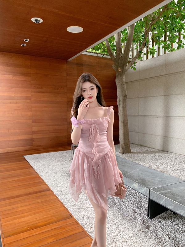 商品名称:ByYou 2025新款法式小飞袖粉色吊带连衣裙高级感收腰显瘦仙女短裙