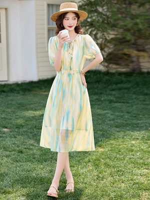 法式温柔风天丝连衣裙女夏2025新款气质收腰绝美扎染小清新a字裙