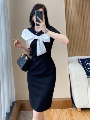 夏2025新款气质礼服连衣裙蝴蝶结修身收腰显瘦黑色包臀短裙小个子