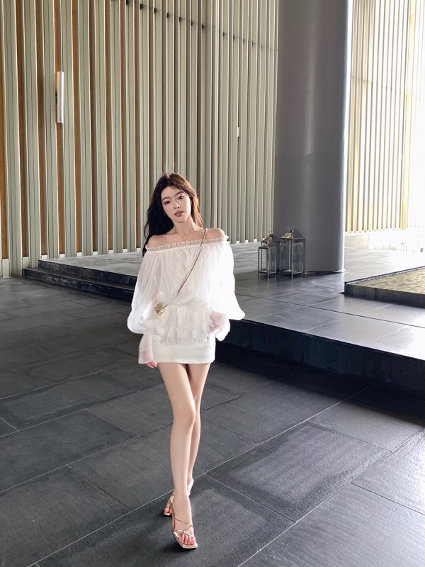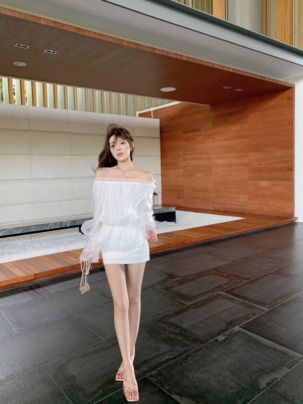 ByYou春季高级感收腰白色衬衫连衣裙显瘦缎面雪纺衬衫裙 含内搭裙