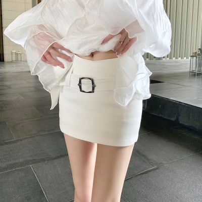 ByYou 夏季新款气质白色高腰包臀西装半身裙热辣美式显瘦a字短裙