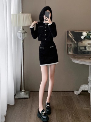 黑色早秋穿搭套装高级感2025新款女显瘦气质上衣短裙两件套小个子