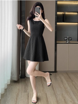 赫本风黑色无袖背心连衣裙女小个子2025夏季新款气质显瘦a字裙子