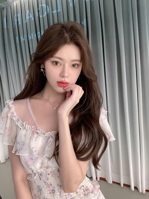 ByYou 夏季新款碎花雪纺连衣裙女设计感荷叶边收腰打揽不规则短裙