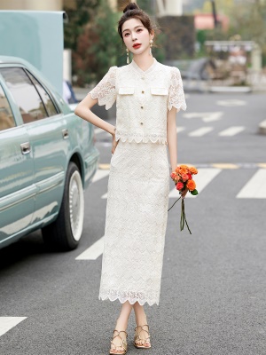 今年流行漂亮套装裙女2025夏装新款小香风蕾丝半身长裙欧货两件套