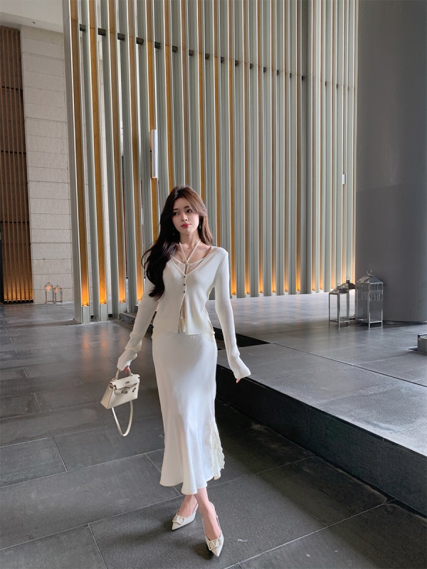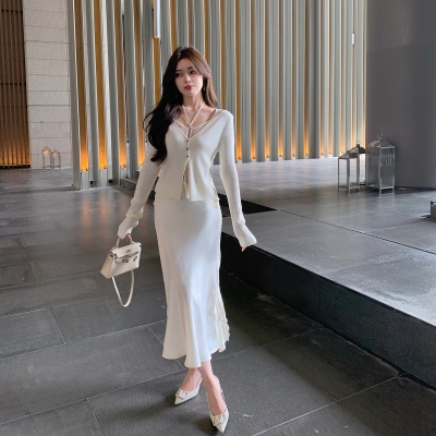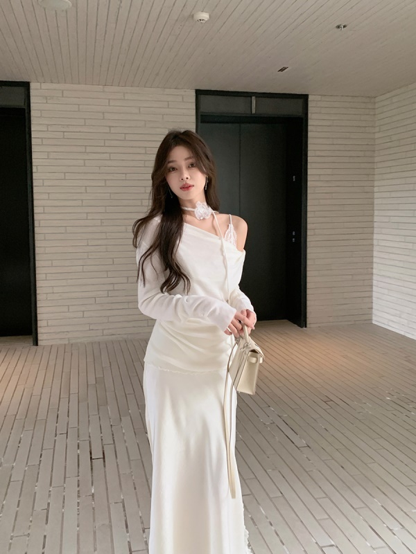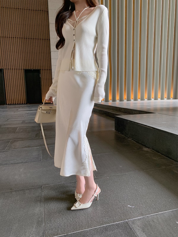 商品名称:ByYou 夏季新款高级感米色开叉缎面半身裙蕾丝包臀裙修身鱼尾长裙