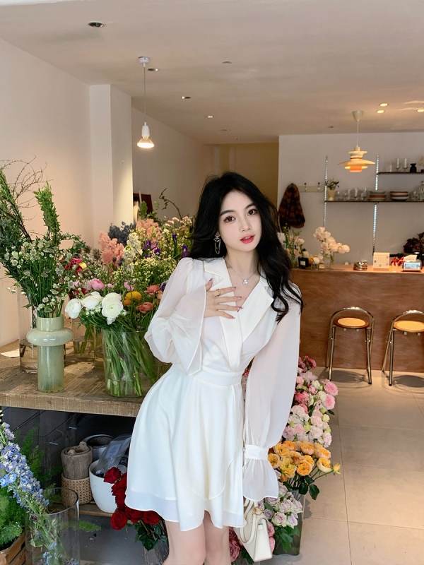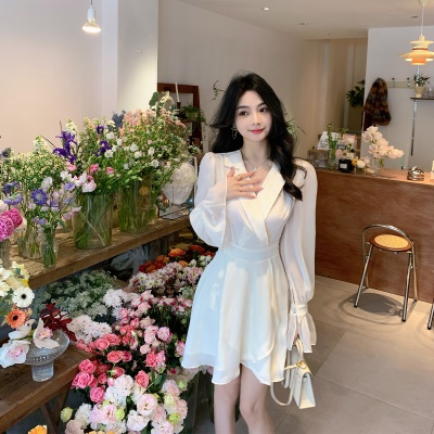 商品名称:ByYou 夏季高级感御姐白色西装连衣裙女新款高腰显瘦泡泡袖短裙子