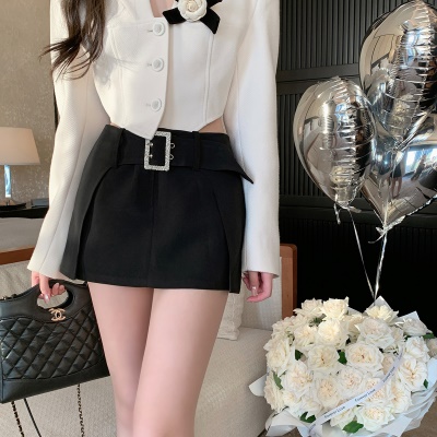 商品名称:ByYou 夏季新款黑色高腰半身裙女设计感小众百搭显瘦A字裙短裙子
