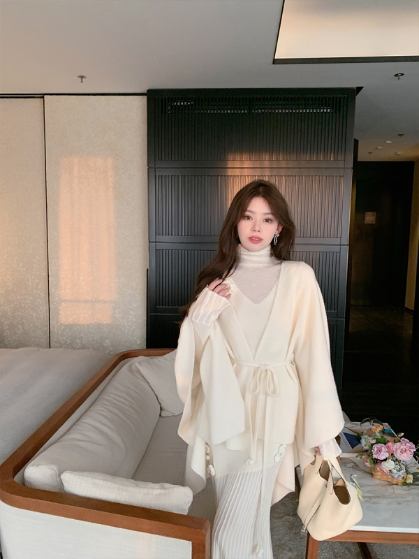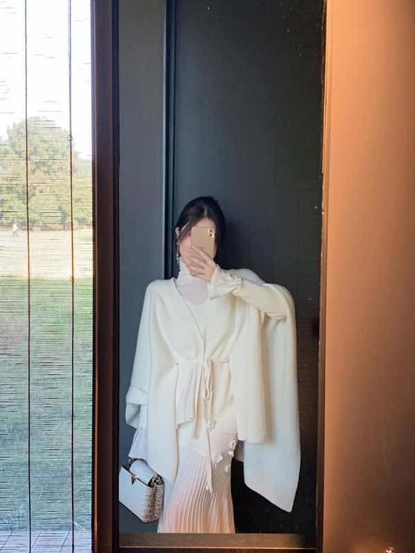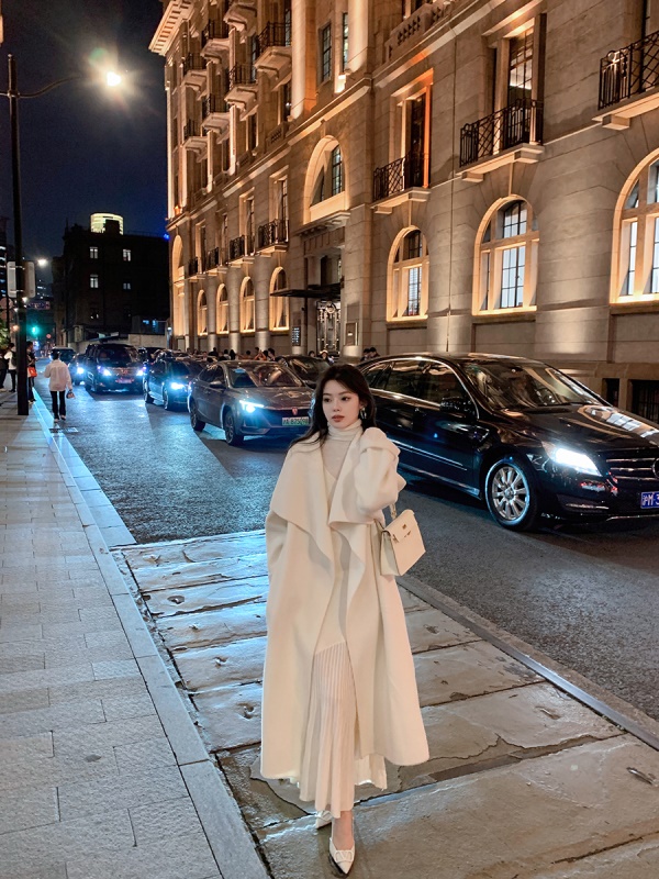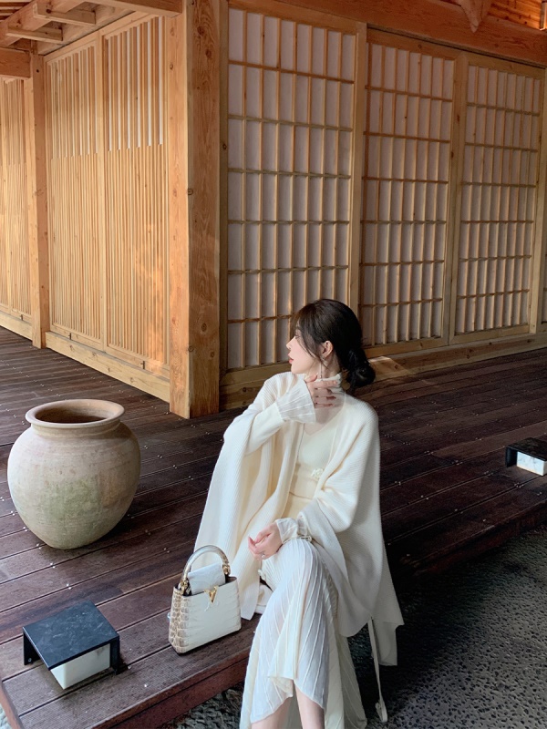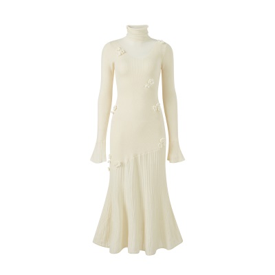 ByYou 秋冬高端兔绒羊毛高领白色针织连衣裙长款显瘦内搭毛衣裙子