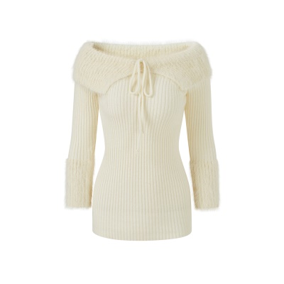 商品名称:ByYou 冬季新款温柔风杏色一字肩针织连衣裙短款修身显身材毛衣裙