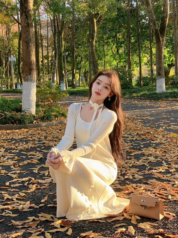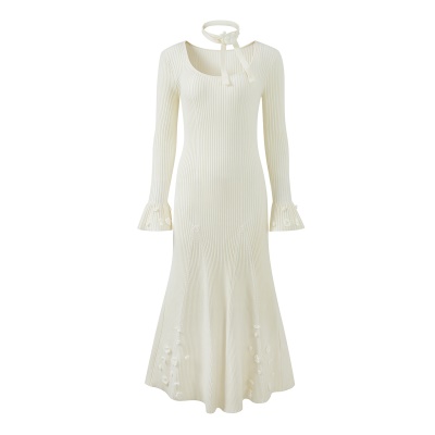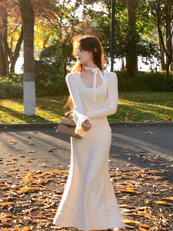 收腰软糯白色气质小香风毛衣连衣裙2025新款秋冬打底配大衣的内搭