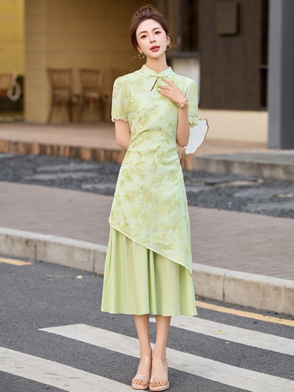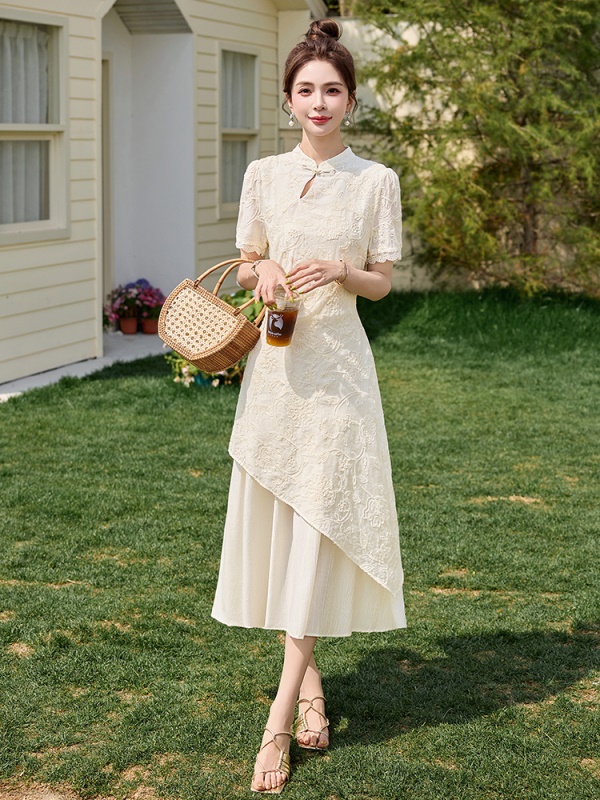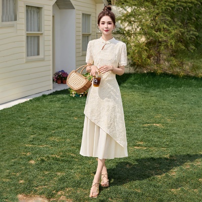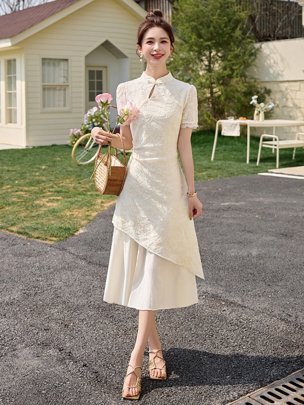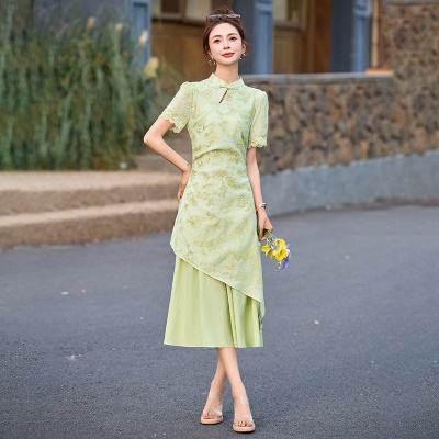 商品名称:新中式国风改良旗袍裙女夏2025新款高端刺绣假两件套不规则连衣裙