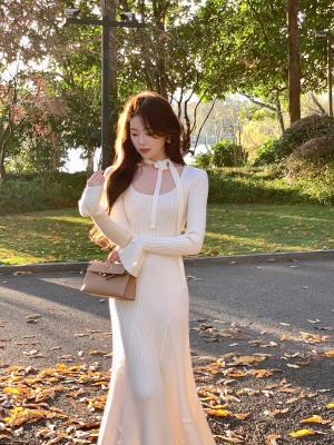 针织鱼尾连衣裙女秋冬季气质高级感小个子打底内搭配大衣的毛衣裙