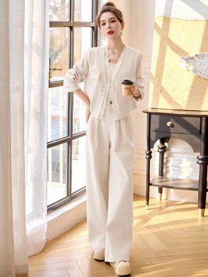 高级感拼接西装套装女2025春季新款干练气质显高阔腿裤职业两件套