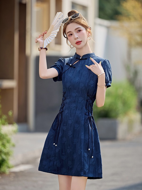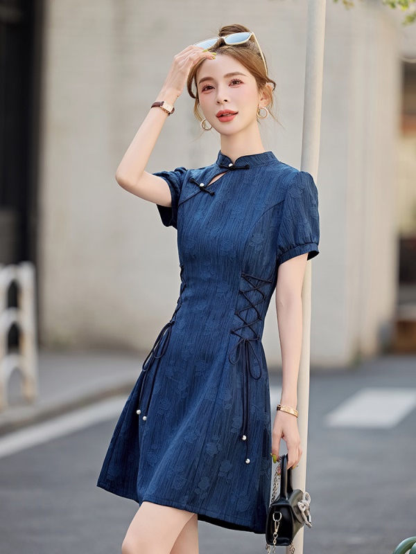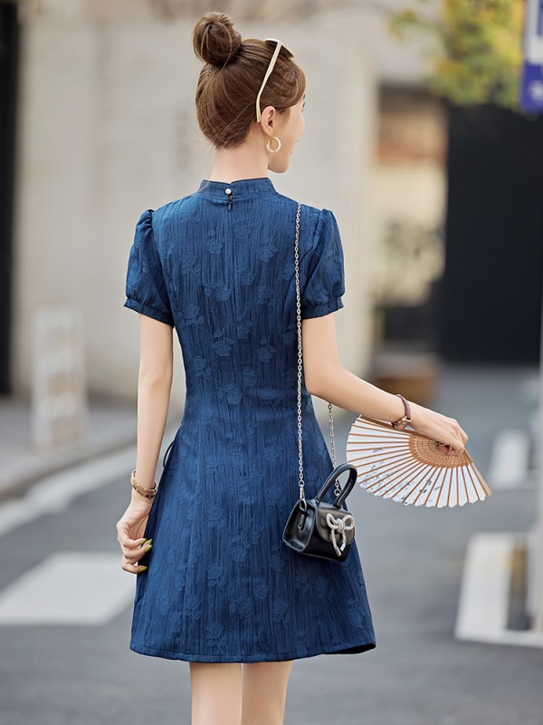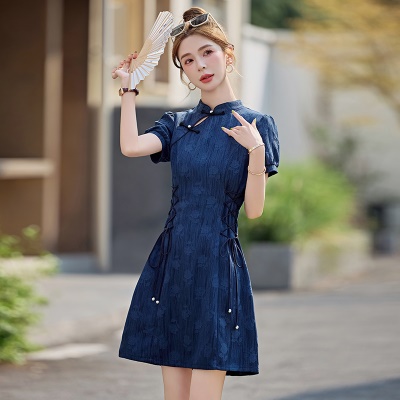 商品名称:新中式提花收腰连衣裙女2025夏季新款国风气质修身改良旗袍A字裙