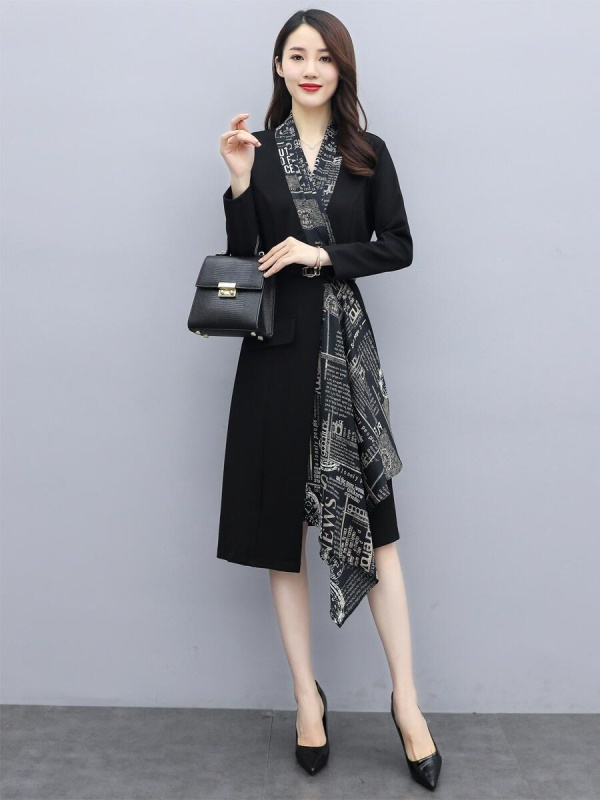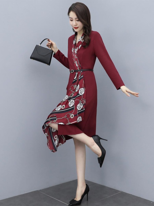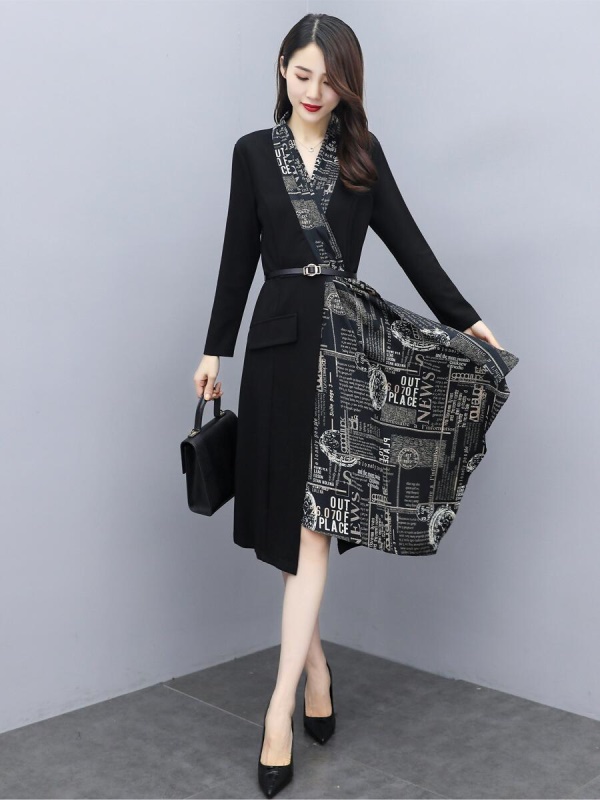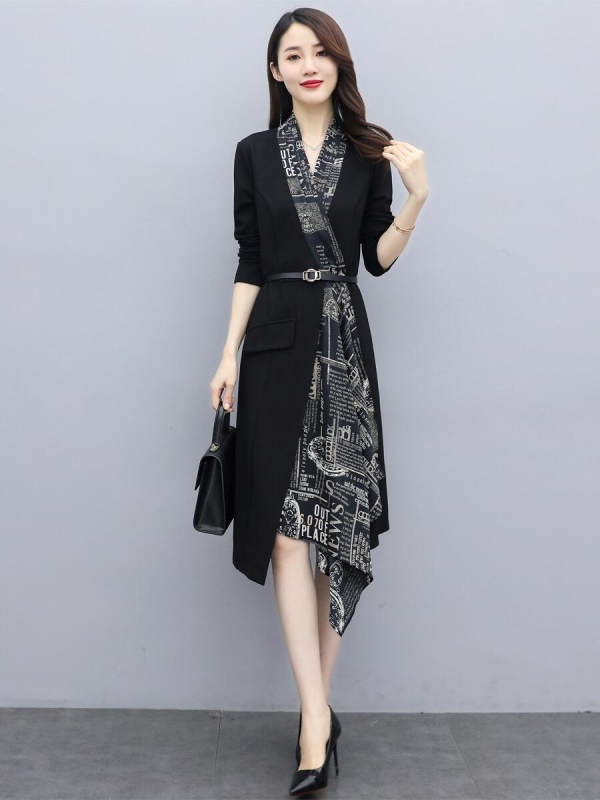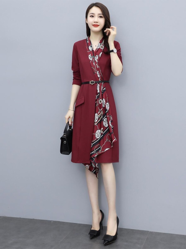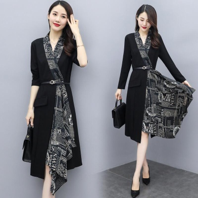 商品名称:女神范高端连衣裙2025年春秋季新款名媛气质不规则印花拼接针织裙