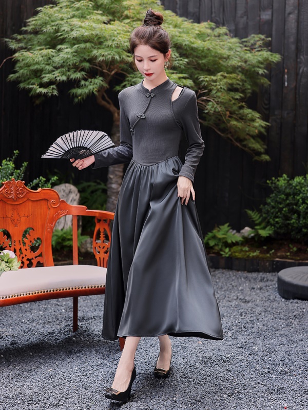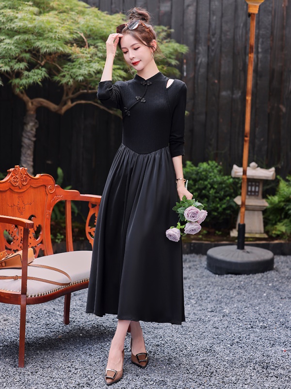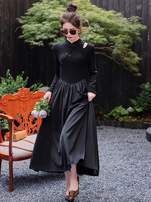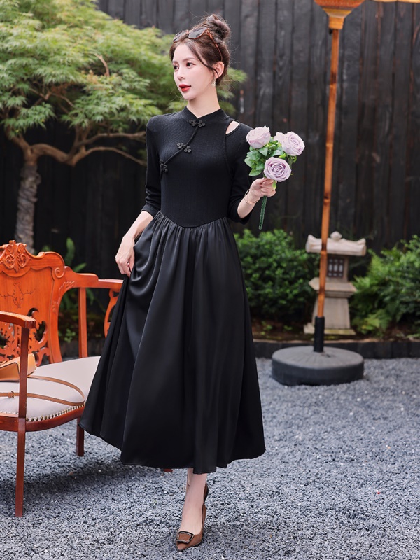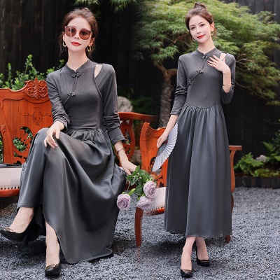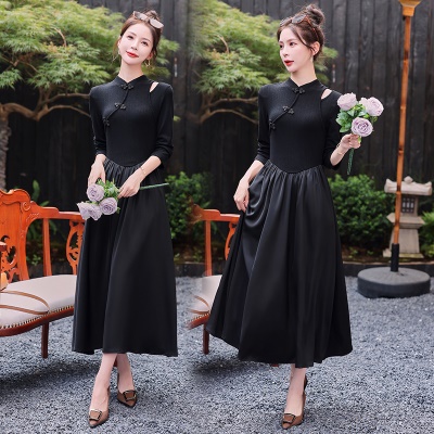 新中式国风长袖连衣裙女2023秋天新款修身显身材高贵洋气漂亮长裙