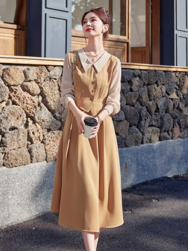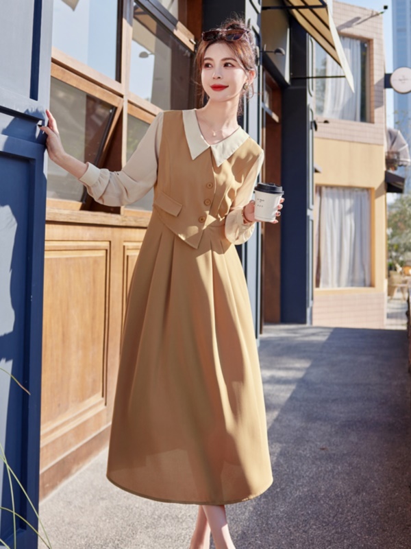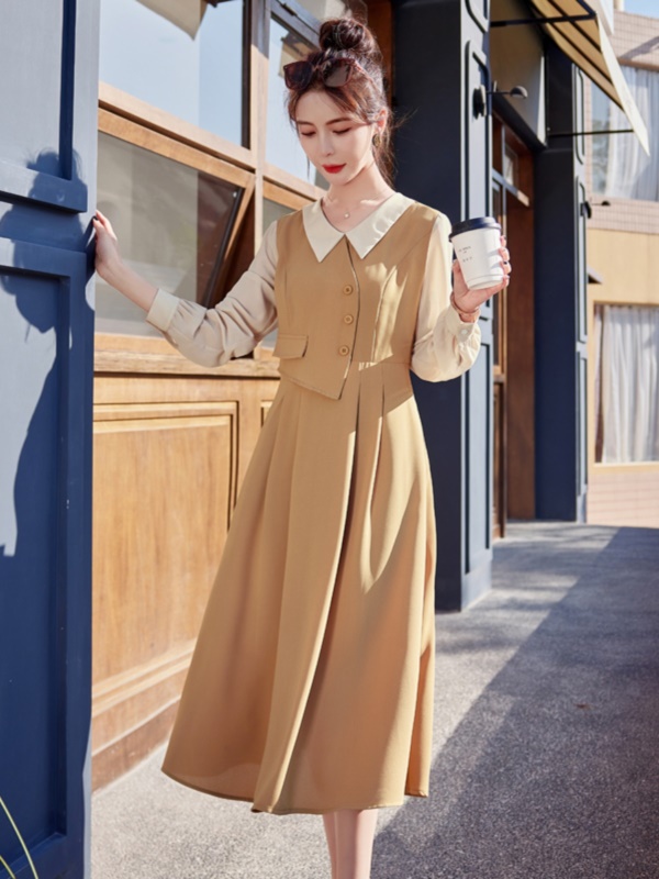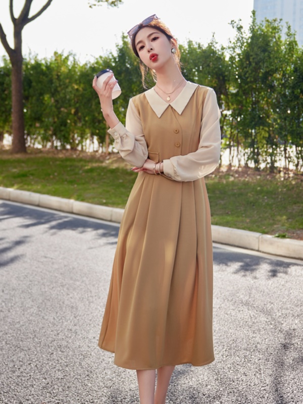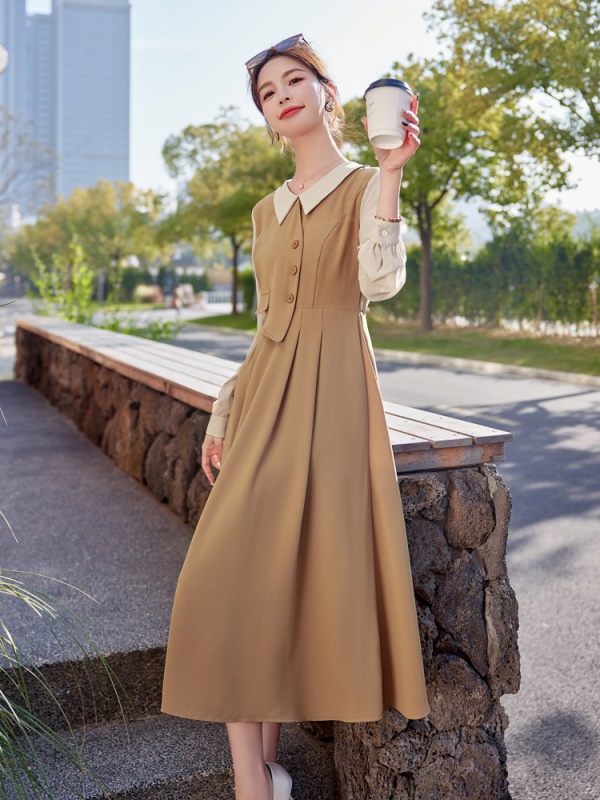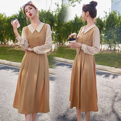 商品名称:假两件长袖设计师连衣裙女2025春季新款欧货时尚小个子高端a字裙