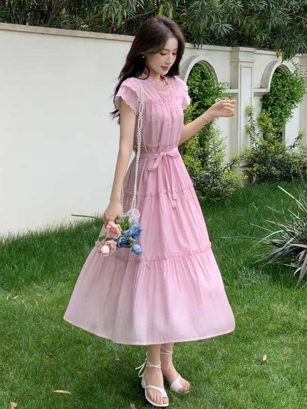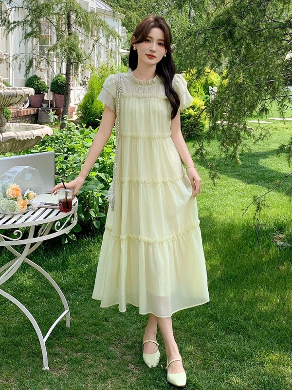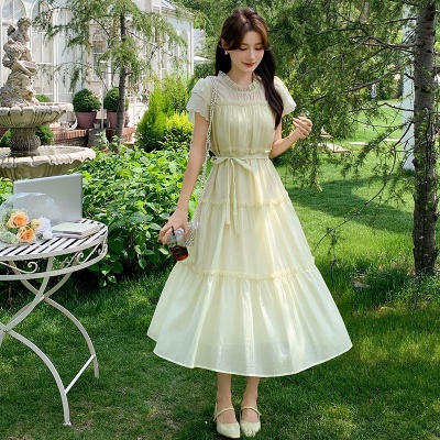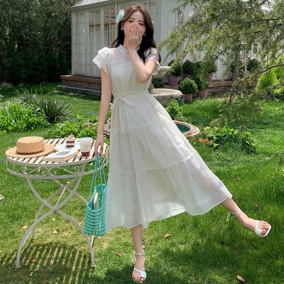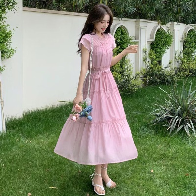 法式木耳边飞飞袖连衣裙女2025夏季天丝松弛感收腰巨好看超仙裙子
