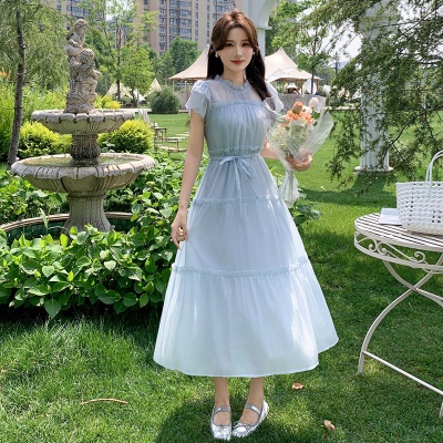 裙子收到好好看,质量很好。泡泡袖蛮遮手臂肉的,高腰A字裙摆设计显高显瘦。小个子女生必备小裙子