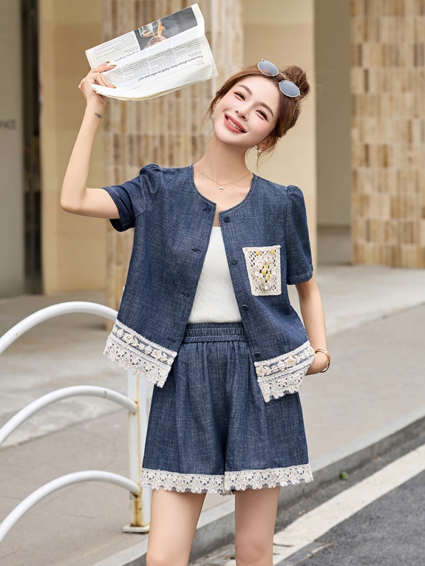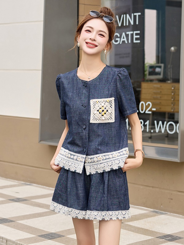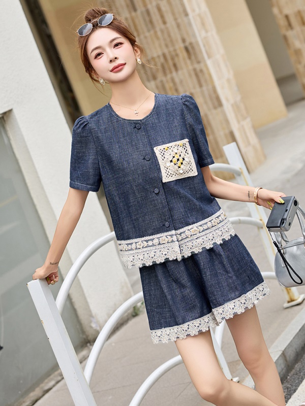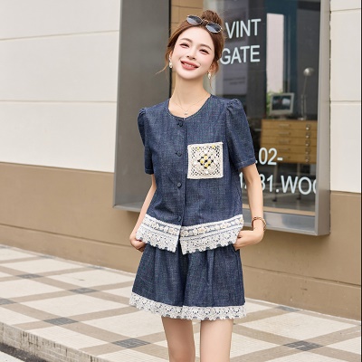 商品名称:复古港风拼接蕾丝短裤套装女2025夏季新款时尚巨好看小个子两件套