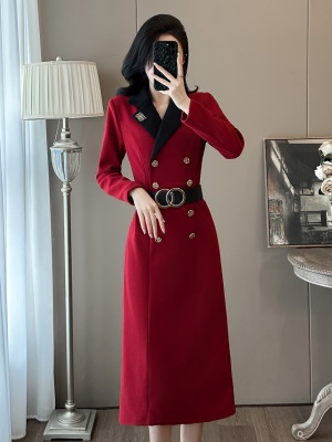 2025秋冬季新款小香风红色西装连衣裙女高级感气质修身宴会晚礼服