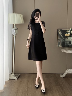 法式赫本风黑色镂空连衣裙女夏季新款高级感气质显瘦赫本风小黑裙