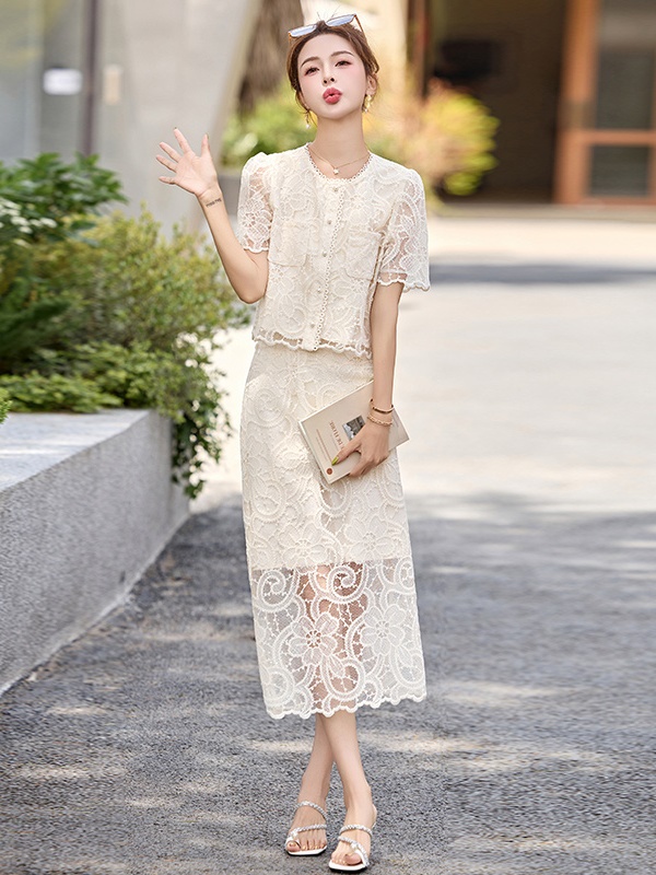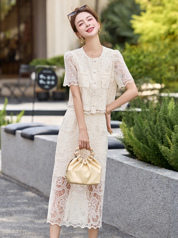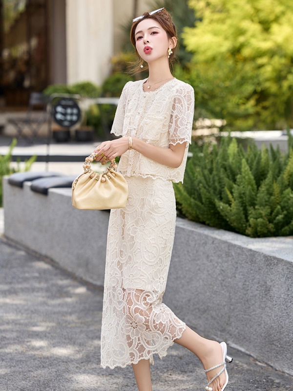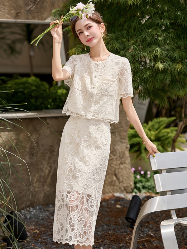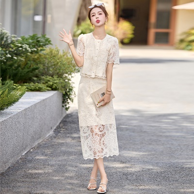 商品名称:气质女神范高端套装裙女2025夏季新款蕾丝小香风绝美小裙子两件套
